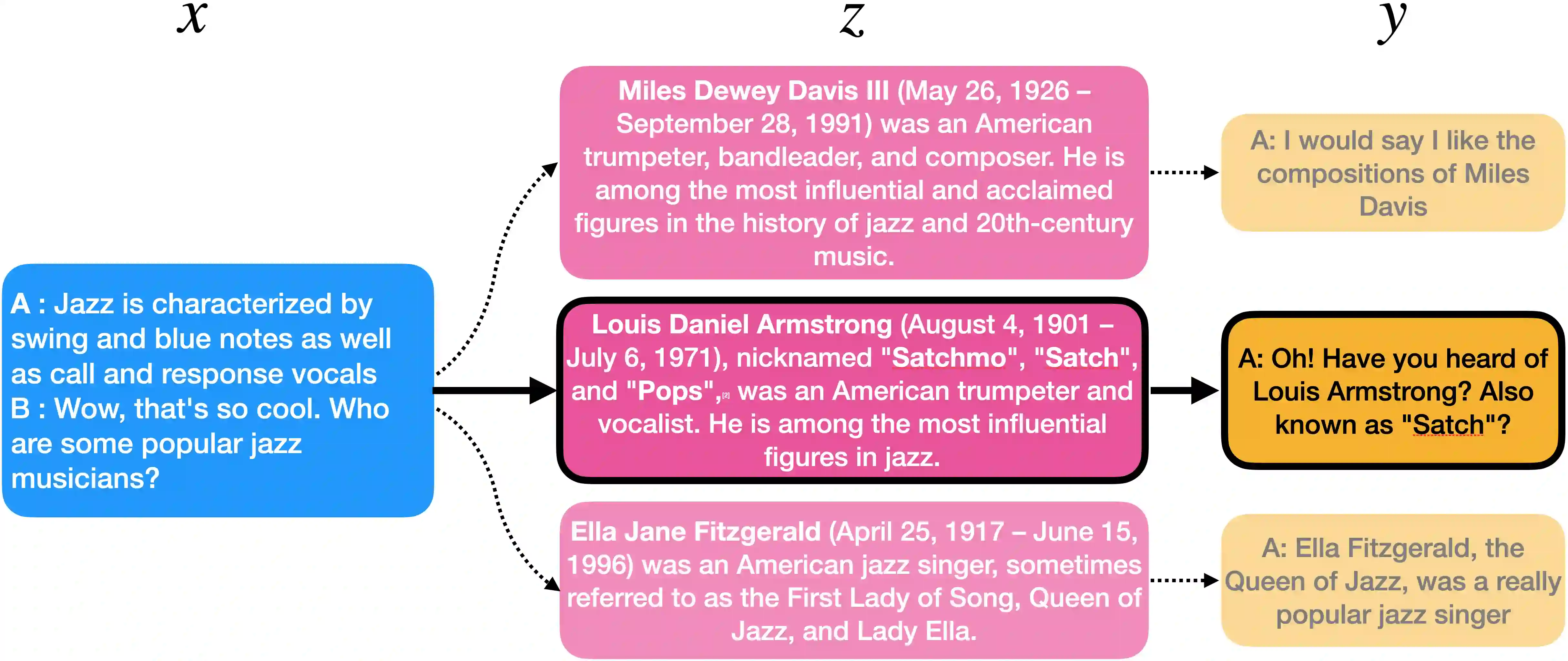 翻译:许多文本生成系统都受益于使用检索器从文本知识堆(例如维基百科)中检索段落,然后作为附加的上下文提供给生成器。对于开放式生成任务(比如在谈话中产生信息化的话语),许多不同段落可能具有同等的相关性,我们发现,联合培训检索器和生成器不完善的现有方法可能具有同等的相关性:检索器可能甚至在前10层中找不到相关通道,因此,生成器可能不会从中学习偏好于将生成的输出置于其中。我们提议使用额外的指南检索器,允许在培训期间使用目标输出和“在后视”检索相关段落。在输入和目标输出的后端分配 Q 之后,我们将指南检索器建模,与标准检索器和生成器联合培训:检索器可能甚至在前10层中找不到相关通道,因此,生成器可能无法从维基百科数据集向导师那里获取信息性谈话,并经过后导培训后,检索器会发现在前10层(23 % 相对改进) 上找到更高相关性的通道。 发电机的反应(19 % 相对改进后路段) 将更接近全面改进。
