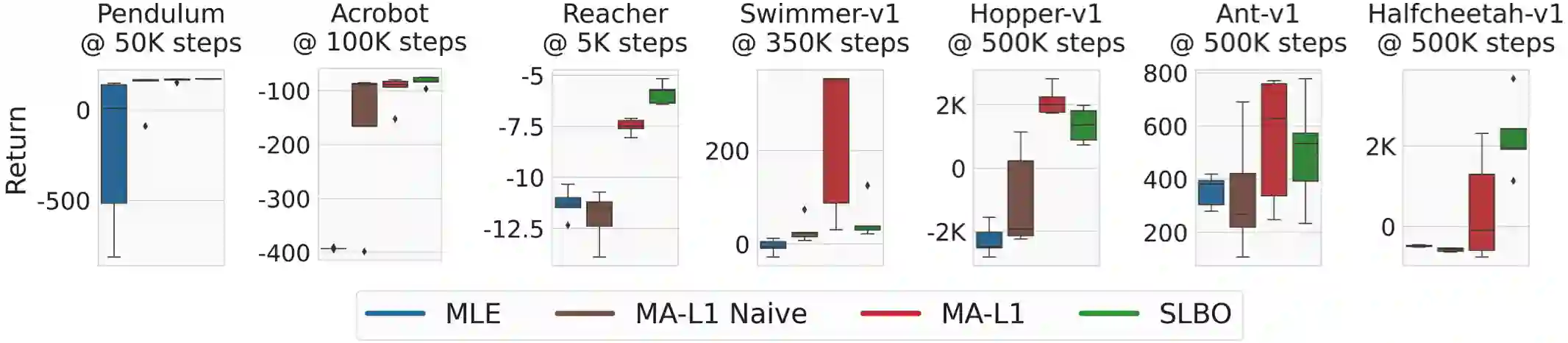 翻译:这项工作表明,以其众多理论利益著称的增值模型学习,在解决流行的基于模型的强化学习算法中具有挑战性的连续控制任务方面,实际上也是可行的。 首先,我们通过将两个模型优势(即模型性能差异)结合到两个模型优势(即模型性能差异)或具有固定政策的模型之间,在最连续的控制环境中实现优于先前的价值认知目标的优异性能,从而在两个模型(SLBO和MBPO)的流行和开放源码RL算法上,在天真地取代价值认知目标,以取代以新式模型为基础的RLL算法中的最大相似性能,从而得出我们的成果,同时在一些环境中,我们提出的解决这一问题的补救办法缩小了在价值认知模型学习理论和实践方面长期存在的差距,使所有价值认知目标能够成功地用于解决若干持续控制的机器人操纵和移动任务。我们的成果是通过对两种基于开放源码的通用RL算法(SLBO和MBO)进行最小的修改而获得的。