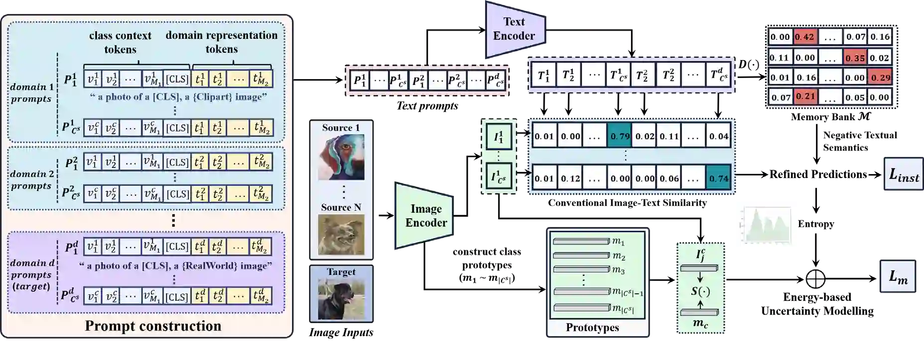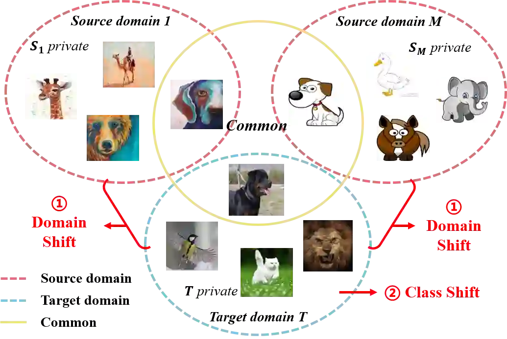 Universal Multi-source Domain Adaptation (UniMDA) transfers knowledge from multiple labeled source domains to an unlabeled target domain under domain shifts (different data distribution) and class shifts (unknown target classes). Existing solutions focus on excavating image features to detect unknown samples, ignoring abundant information contained in textual semantics. In this paper, we propose an Adaptive Prompt learning with Negative textual semantics and uncErtainty modeling method based on Contrastive Language-Image Pre-training (APNE-CLIP) for UniMDA classification tasks. Concretely, we utilize the CLIP with adaptive prompts to leverage textual information of class semantics and domain representations, helping the model identify unknown samples and address domain shifts. Additionally, we design a novel global instance-level alignment objective by utilizing negative textual semantics to achieve more precise image-text pair alignment. Furthermore, we propose an energy-based uncertainty modeling strategy to enlarge the margin distance between known and unknown samples. Extensive experiments demonstrate the superiority of our proposed method.