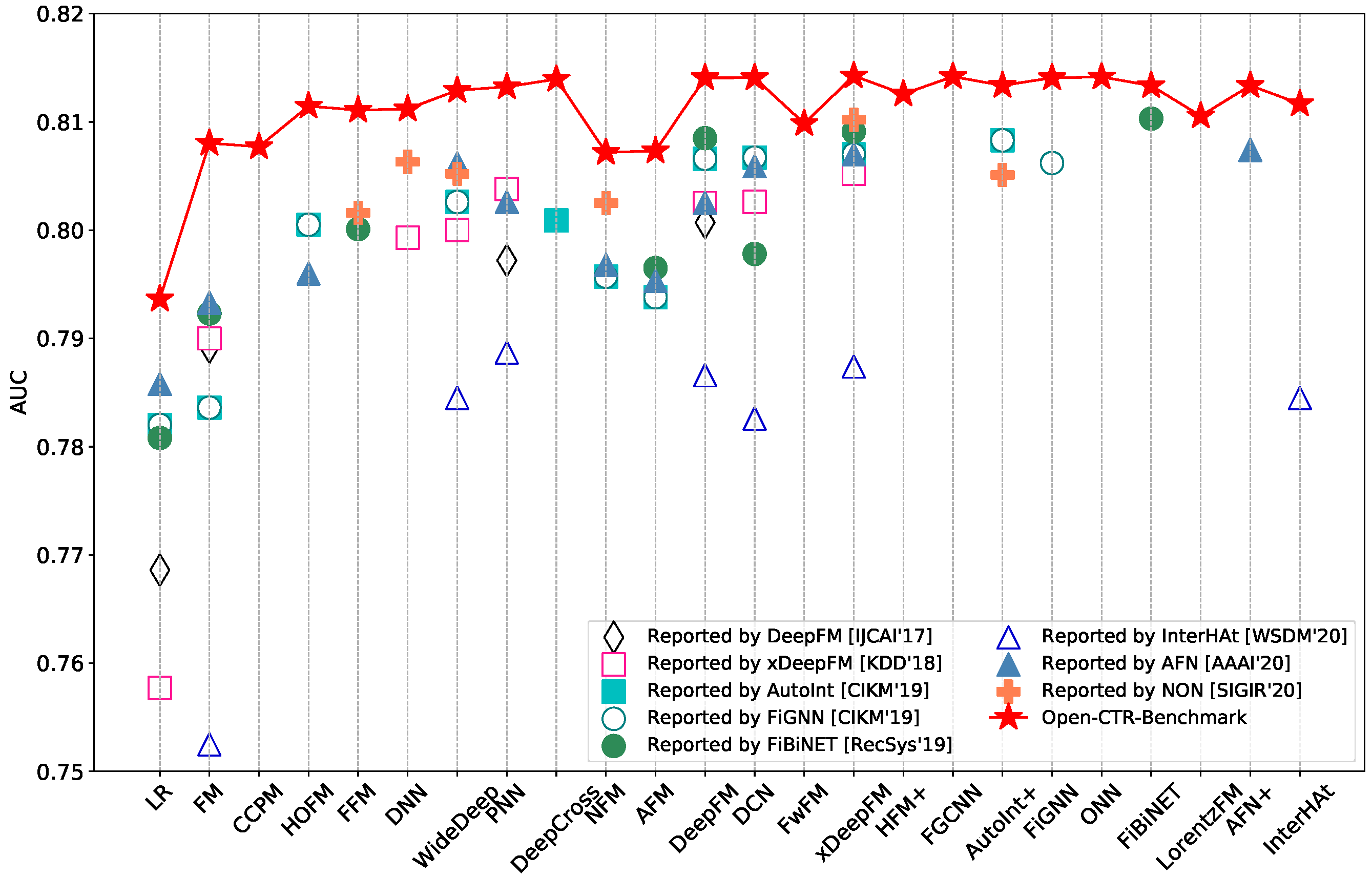 翻译:点击率(CTR)预测是许多应用的关键任务,因为其准确性直接影响到用户经验和平台收入。近年来,CTR预测在学术界和工业界都进行了广泛研究,结果产生了各种CTR预测模型。不幸的是,仍然缺乏标准化基准和CTR预测研究的统一评价协议。这导致现有研究之间无法复制甚至不一致的实验结果,这在很大程度上限制了其研究的实际价值和潜在影响。在这项工作中,我们的目标是为CTR预测执行开放的基准,并以可复制的方式对不同的模型进行严格的比较。为此,我们共进行了超过12,000个GPU小时的实验,以重新评价关于多个数据集和设置的24个现有模型。令人惊讶的是,我们的实验表明,如果进行足够的超参数搜索和模型调整,许多深度模型的差别就会小于预期。结果还表明,在CTR预测模型的模型方面取得真正的进展确实是一项非常具有挑战性的研究任务。我们认为,我们的基准工作不仅允许研究人员在12000多个GP小时以上的时间里重新评价关于多个数据集和设置的现有模型的有效性,而且还能够公正地将新的模型的实地进行比较。