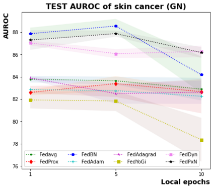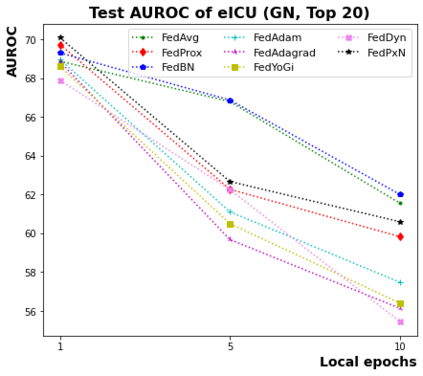 翻译:联邦学习(FL)是一个活跃的研究领域。 采用FL最合适的领域之一是医疗领域,病人隐私必须得到尊重。 但是,以前的研究并没有充分考虑到在医疗领域谁最可能使用FL。 不是医院急于采用FL,而是服务供应商,如IT公司,他们希望开发机器学习模型,记录真正的病人记录。此外,服务供应商更愿意侧重于尽可能以最低的成本最大限度地发挥模型的性能。在这项工作中,我们提出了FL方法的经验基准,既考虑性能成本,也考虑货币成本,同时考虑三个真实世界数据集:电子健康记录、皮肤癌图像和电动心电图数据集。我们还提议采用Proximal 正规化电子Xmept 本地正常化(FedPxN), 使用FedProx和FedBN的简单组合,它们超越了所有其他FL算法,同时只消耗比最有效方法略高的功率。