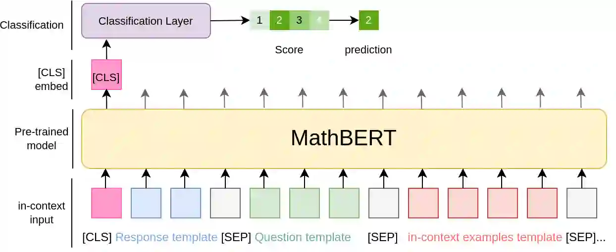 翻译:自动短回答分级是探索如何使用人工智能(AI)基础工具改善教育的一个重要研究方向。目前最先进的方法使用神经语言模型来建立学生反应的矢量化表达,然后由分类者来预测评分。然而,这些方法有若干关键的局限性,包括:(一)它们使用未经充分适应教育科目领域和/或学生生成的文本的预先培训的语言模型,以及(二)它们几乎总是对每个问题都训练一个模型,忽视一个问题之间的关联,并导致由于先进语言模型的大小而出现一个重大的模型储存问题。在本文中,我们研究学生对数学问题的答复自动简短解答的问题,并为这项任务提出新的框架。首先,我们使用MatherBERT,一个适应数学内容的流行语言模型BERT的变式,作为我们的基础模型,并微调它用于学生反应分级的下游任务。第二,我们使用一种直截面学习方法,为语言模型提供评分示例,作为补充背景信息,并促进对先前的无形问题进行概括化。我们现有的数学框架在现实世界中特别展示了数学问题。