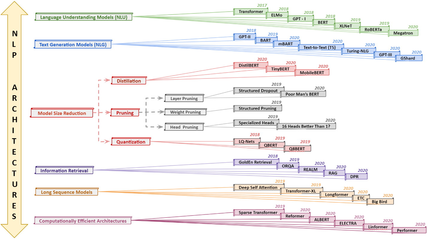 翻译:近年来,自然语言处理(NLP)模式在文字分类、机器翻译、认知对话系统、通过自然语言理解(NLU)信息检索和自然语言生成(NLG)等语言和语义任务方面取得了惊人的成功,这主要归功于开创性变异器结构,导致诸如BERT、GPT(I、II、III)等设计。虽然这些大型模型取得了前所未有的绩效,但它们的计算成本却很高。因此,最近的国家语言处理(NLP)结构中的一些结构利用了转让学习、修剪、量化和知识蒸馏的概念,实现了中度模型规模,同时保持了与其前身几乎相似的业绩。此外,为了减轻语言模型从知识提取角度提出的数据规模挑战,建立了知识检索器,以便以更高的效率和准确性从大型数据库中提取清晰的数据文件。最近的研究还侧重于通过高效关注更长时间的投入序列来提高判断力。在本文中,我们总结和审查当前的NP(SO)状态模式,并研究了目前对NP-L(SO)系统运作中的最佳做法结构进行一项不同的业绩评估。