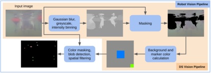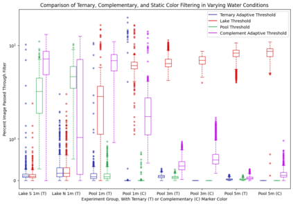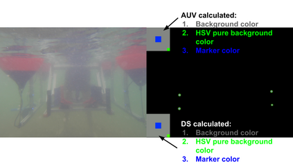 Autonomous Underwater Vehicles (AUVs) conduct missions underwater without the need for human intervention. A docking station (DS) can extend mission times of an AUV by providing a location for the AUV to recharge its batteries and receive updated mission information. Various methods for locating and tracking a DS exist, but most rely on expensive acoustic sensors, or are vision-based, which is significantly affected by water quality. In this \doctype, we present a vision-based method that utilizes adaptive color LED markers and dynamic color filtering to maximize landmark visibility in varying water conditions. Both AUV and DS utilize cameras to determine the water background color in order to calculate the desired marker color. No communication between AUV and DS is needed to determine marker color. Experiments conducted in a pool and lake show our method performs 10 times better than static color thresholding methods as background color varies. DS detection is possible at a range of 5 meters in clear water with minimal false positives.