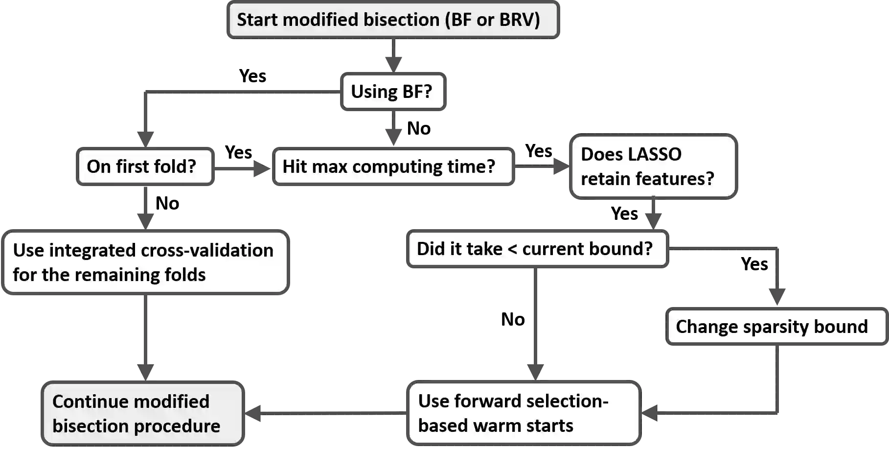 翻译:由于在数学编程方面不断取得进展,Mix Integer优化已成为一种与民众在选择回归问题特征方面的正规化方法相比的竞争性方法。该方法显示出无可置疑的基本吸引力和多功能性,但也提出了重大挑战。我们应对这些挑战,在调整宽度约束(对有效性至关重要的一个参数)时减少计算负担,在特征相近和信号性质和强度不同的情况下提高绩效。重要的是,我们使这种方法在现实的大小和复杂性的应用中具有效率和效果――在优化时不诉诸放松或超常,也不放弃严格的交叉校准调整。在微妙的情景下,通过多管齐下的蓝图,利用混合整形规划框架的特点,并通过白化、数据处理前的步骤,实现可比较的可行性和改进性。