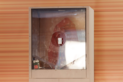 Autonomous mobile robots have the potential to solve missions that are either too complex or dangerous to be accomplished by humans. In this paper, we address the design and autonomous deployment of a ground vehicle equipped with a robotic arm for urban firefighting scenarios. We describe the hardware design and algorithm approaches for autonomous navigation, planning, fire source identification and abatement in unstructured urban scenarios. The approach employs on-board sensors for autonomous navigation and thermal camera information for source identification. A custom electro{mechanical pump is responsible to eject water for fire abatement. The proposed approach is validated through several experiments, where we show the ability to identify and abate a sample heat source in a building. The whole system was developed and deployed during the Mohamed Bin Zayed International Robotics Challenge (MBZIRC) 2020, for Challenge No. 3 Fire Fighting Inside a High-Rise Building and during the Grand Challenge where our approach scored the highest number of points among all UGV solutions and was instrumental to win the first place.