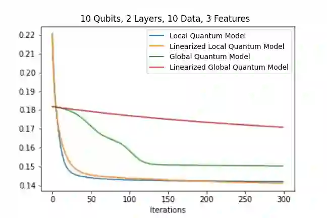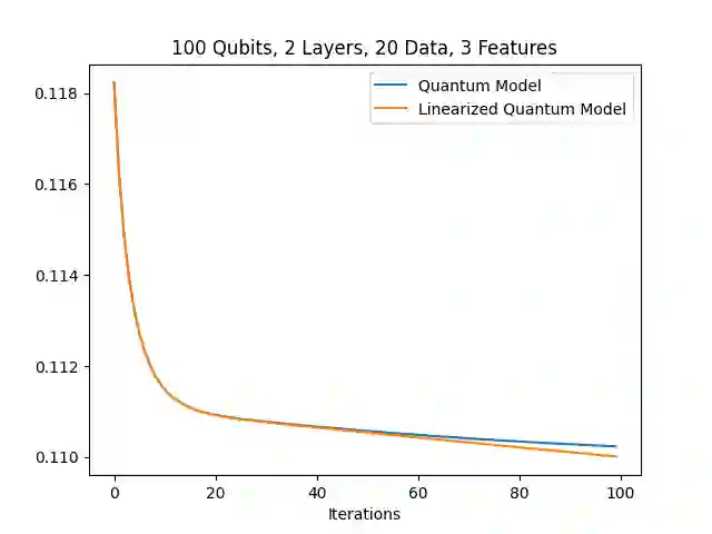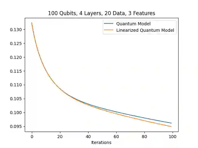 翻译:在通过梯度下降来训练过度参数模型函数的过程中,参数有时不会发生重大变化,而且仍然接近最初值。这一现象被称为懒惰训练,并促使考虑模型函数围绕初始参数的线性近似。在懒惰的状态下,这种线性近近似模仿参数化函数的行为,其相关内核被称为淡色内核,它规定了模型的培训性能。已知在(古典)大宽度的神经网络中,进行懒惰训练。在本文中,我们显示对几何本地参数化量子电路的培训进入大量qubit的懒惰状态。更准确地说,我们证明,在培训过程中,这种几何式本地参数化量子电路的参数变化速度,以及相关量子模型函数的线性近近度的精确度是一定的。随着qubits数量的增长,这两条线性的培训往往为零。我们用数字模拟来支持我们的解析结果。