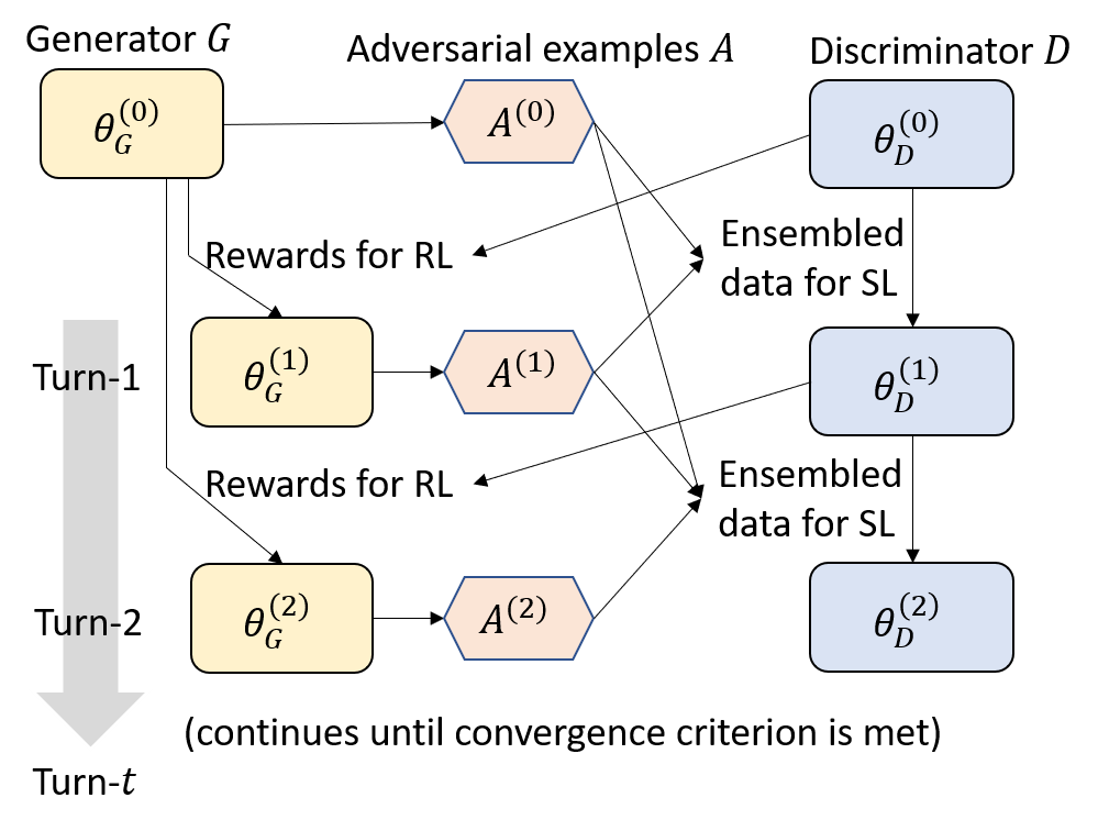 翻译:设计更好的自动对话评价衡量标准可以加快对对话性对话的评价研究,但是,现有的可培训的对话评价模式一般限于以纯监督方式培训的分类人员,他们受到对抗性攻击的极大风险(例如,非敏感反应,享有很高的分类分),为了减轻这种风险,我们提议采用对抗性培训方法学习一种强健的模式,即ATT(反向图灵测试),这种模式区分机器产生的与人文答复的反应。与以往以扰动为基础的方法不同,我们的歧视者通过利用强化学习迭代产生不受限制和多样的对抗性例子接受培训。这种不受限制的对抗性培训方法的主要好处是允许歧视者在迭接的攻击性防御性游戏中提高稳健性。我们的歧视者对强攻击者(包括DialoGPT和GPT-3)表现出很高的准确性。