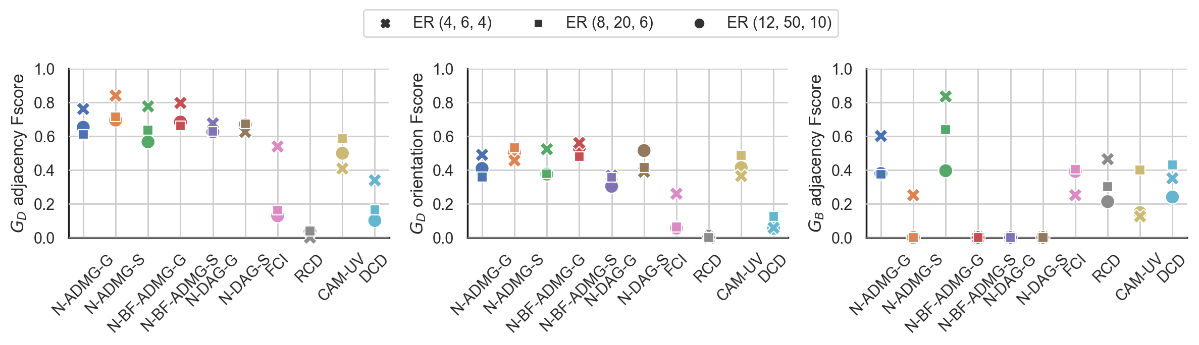 潜在混淆一直是从观察数据进行因果推理的长期障碍。一种流行的方法是使用无环有向混合图(ADMG),它使用定向和双向边描述变量之间的祖先关系。然而,现有的ADMG方法基于线性函数假设或者是复杂的离散搜索,对于大型数据集缺乏计算可处理性。在本研究中,我们进一步扩展现有的工作,从观察数据中开发一种基于非线性函数关系的ADMGS学习的新型基于梯度的方法。我们首先表明,在ADMGS的无弓形假定和非线性附加噪声模型的情况下,存在潜在混淆是可辨识的。基于此,我们提出了一种新的基于自回归流程的神经因果模型,用于ADMGS学习。这不仅可以使我们在存在潜在混淆的数据背后确定复杂的因果结构关系,同时还可以同时估计它们的函数关系(因此是治疗效果)。我们通过对合成数据和真实世界数据集的实验进一步验证了我们的方法,并展示了与相关基线的竞争性能。