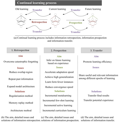 翻译:人类持续学习的能力与稳定比重可塑性Dilemma(CL)密切相关,它描述了人类如何实现持续学习能力和保存学到的信息。自出生以来,人工智能(AI)始终存在CL的概念。本文件建议对CL进行全面审查。与以前主要侧重于CL灾难性遗忘现象的以往审查不同,本文根据稳定比重可塑性机制从更宏观的角度对CL进行了调查。对生物对应方的比较,“智能”AI代理商应该(i) 记住以前学到的信息(信息反射);ii) 不断推断新信息(信息前景:iii) 传递有用信息(信息转移),实现高水平的CL。然后介绍分类、评价指标、算法、应用以及一些未决问题。我们的主要贡献涉及:从人造一般情报水平上重新校准CL;ii) 对CL专题进行详细和广泛的概述;iii) 就CL的潜在发展提出一些新想法。