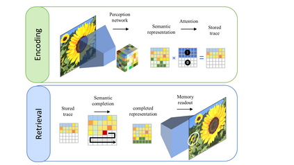 翻译:许多不同研究都表明,内存是遗传过程,但大多数计算模型都采用了存储视图。在这项工作中,我们建议了一个基因内存的计算模型。它基于一个中心假设,即hippocampus 存储并检索某一插曲的某些部分作为记忆跟踪,这必然是不完整的。回顾,新皮层根据一般语义信息合理地填充了缺失的信息,我们称之为语义补全。随着我们使用由不同背景代表背景放大的数字图像(MNIST)的时段,我们的模型以VQ-VAE为基础,以索引矩阵的形式生成压缩的隐性表达方式,该模型仍然有一些空间解析。我们假设,注意选择了索引矩阵的某些部分,而另一些则被丢弃,这代表了该插曲的线索,并存储了记忆跟踪。回顾,缺失部分被填充成一个PixelCNN, 建模完成语义补全,而完成的索引矩阵通常可以通过VQ-VAE型模型解析成完整图像。模型的内存层的内存的内存也能够完全的内存的内存的内存到内存的内存,因此,该模型可以将内存的内存的内存的内存的内存到内存的内存的内存到内存到内存的内存的内存的内存的内存到内存到内存到内存的内存的内存的内存的内存的内存到内存的内存的内存的内存到内存的内存的内存的内存到内存到内存到内存到内存的内存的内存的内存层。