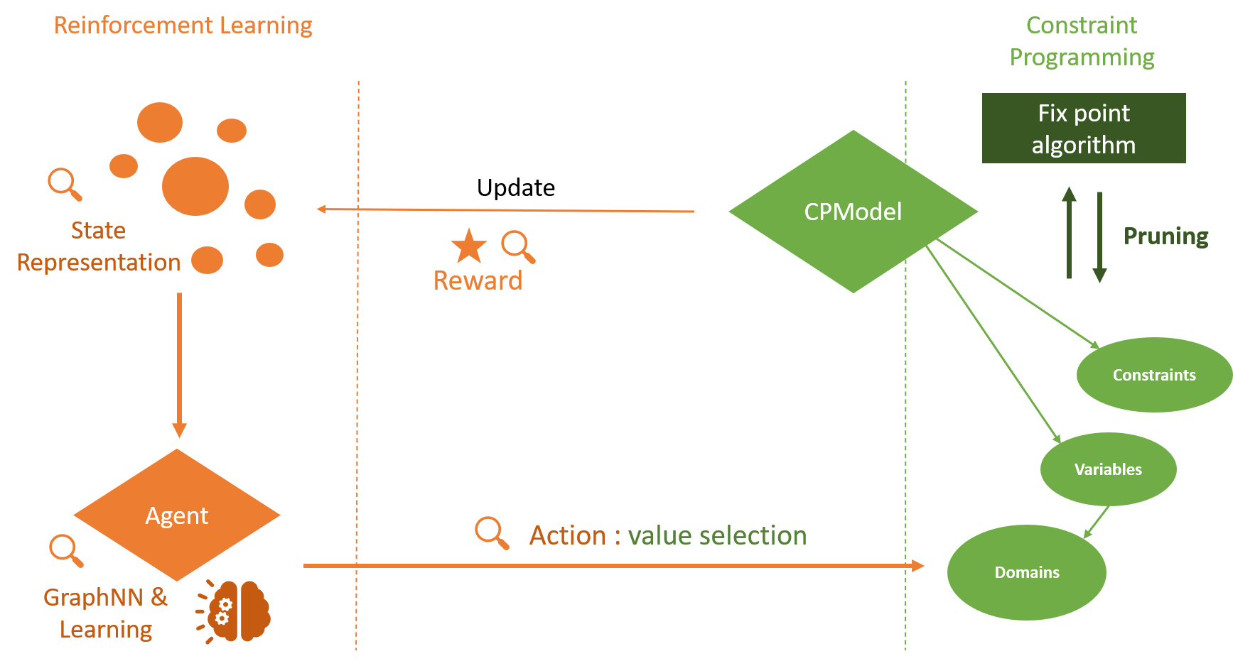 翻译:多年来,设计解决组合优化问题的高效通用算法一直是一个积极的研究领域。标准精确的解决方法基于对解决方案集的精明和完整列举。一种关键和非三重的设计选择是分流战略,指导搜索如何进行。过去十年已经表明对设计基于机械学习的混合法以解决组合优化问题的兴趣日益增长,目的是利用历史数据的知识解决类似的新问题。光是使用这种超常方法只能提供近似的解决办法,但无法证明是最佳的,也无法对其解决方案加以限定。最近的工作表明,强化学习可以成功地用于推动制约程序(CP)解决方案的搜索阶段。然而,还表明,这种混合化具有挑战性,因为标准CP框架并不本地地包括机器学习机制,从而导致效率低下。本文为SeaPearl提供了灵活性概念的证明,这是在朱莉亚实施的一个新的混合方案解决方案解决方案解决方案解决方案,支持机器学习常规常规,以便学习部门决定,同时利用强化绩效学习。支持我们学习了两个解决方案的模型,同时也为未来解决方案提供了一种解决方案的模型。