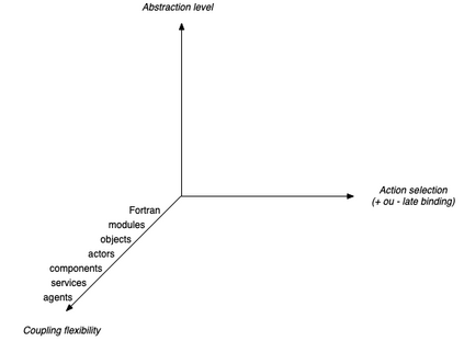 翻译:本章的目的是对编程抽象概念的演变提出一些回顾性分析,从{em 程序}, {em 对象}, {em 元件}, {em sections}, {em service}, 直到{em 代理},% 有一些比较软件组件和代理(和多试剂系统)的概念,% 所选择的方法是通过在一般历史观点中取而代之。 以三个轴/二轴/二元来选择一些共同的偏向: {em 行动选择} 在一个实体一级, 实体之间和(hem subliploy}, 和{em phem level }}。我们确实可以观察到一些不断追求更大的灵活性(通过诸如{em loced contracil} 或{em commission}) 等概念,甚至可以比较软件组成部分和代理人概念的演变。