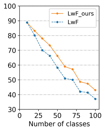 翻译:对新知识的不断成功学习将使智能系统能够识别越来越多的对象类别。 但是,当前的智能系统在更新以学习新类时往往无法正确识别以前学到的物体类别。 人们普遍认为,这种降级表现完全是由于灾难性地忘记了以前学到的知识。 在本研究中,我们认为,班级混乱现象也可能在不断学习期间降低分类表现方面起到作用,即新类与以前学到的任何类别之间的高度相似性也会导致分类者在认识这些旧类时犯错误,即使这些旧类的知识没有被遗忘。为了缓解班级混乱问题,我们提议了一项歧视性的蒸馏战略,以帮助对在不断学习期间混淆的班级之间的歧视性特征进行分类。关于多重自然图像分类的实验支持,如果与现有方法相结合,拟议的蒸馏战略将有效地进一步改进持续学习。