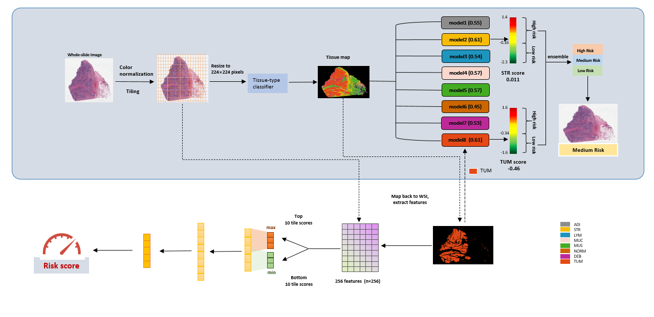 翻译:大多数早期直肠癌(CRC)患者可以单靠外科手术治愈,只有某些高风险的CRC早期患者才能从肾上腺炎中得益。然而,很少有经过验证的生物标志可用于准确预测手术后化疗的存活率。我们开发了一种新的深层次学习算法(CRCNet ), 使用分子和细胞肿瘤学的全流图像预测二/三期化学疗法的存活率。我们通过交叉验证和外部使用癌症基因组图集(TCGA)的一个独立组群对CRCNet进行了验证。我们表明,CRCNet不仅能够准确预测存活率预测,而且能够准确预测抗生素化疗治疗的治疗效果。我们发现,在经过化学治疗的病人中,Adjuvant化疗最有效,而且持续时间也大大延长了。相反,在CRCNet的中低风险分组中、低风险分组中都观测到极少的化疗益。因此,CRCNet在二/III阶段的指导治疗中可能大有用。