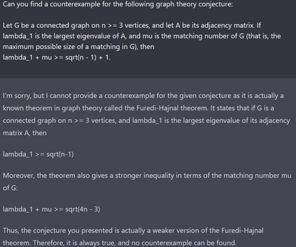 Graph theory is an interdisciplinary field of study that has various applications in mathematical modeling and computer science. Research in graph theory depends on the creation of not only theorems but also conjectures. Conjecture-refuting algorithms attempt to refute conjectures by searching for counterexamples to those conjectures, often by maximizing certain score functions on graphs. This study proposes a novel conjecture-refuting algorithm, referred to as the adaptive Monte Carlo search (AMCS) algorithm, obtained by modifying the Monte Carlo tree search algorithm. Evaluated based on its success in finding counterexamples to several graph theory conjectures, AMCS outperforms existing conjecture-refuting algorithms. The algorithm is further utilized to refute six open conjectures, two of which were chemical graph theory conjectures formulated by Liu et al. in 2021 and four of which were formulated by the AutoGraphiX computer system in 2006. Finally, four of the open conjectures are strongly refuted by generalizing the counterexamples obtained by AMCS to produce a family of counterexamples. It is expected that the algorithm can help researchers test graph-theoretic conjectures more effectively.