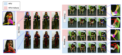 翻译:缺乏精细的接合点,如手手指,是按最大行动识别数据集NTU-RGBD培训的先进骨骼行动识别模型的基本性能瓶颈。 为了解决这一瓶颈问题,我们引入了新的基于骨骼的人类行动数据集NTU60-X。 除了NTU-RGBD中每个骨骼的25个身体连接点外,NTU60-X数据集包括手指和面部连接,使得骨骼代表更加丰富。我们适当修改最新方法,以便利用引入的数据集进行培训。我们的结果表明NTU60-X在克服上述瓶颈和改善总体和迄今最差的行动类别方面的效力。