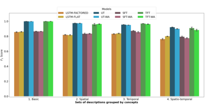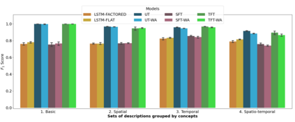 翻译:语言是外部世界的界面。 语言必须根植于其它感官模式。 虽然有广泛的文献研究机器如何学习有根语言, 但如何学习时空语言概念的话题仍然基本上没有被探索。 为了在这方面取得进展, 我们在这里引入了一个新型的时空语言基础任务, 目标是了解一个有内含代理的行为痕迹的含义。 这是通过培训一个真理函数来实现的, 该功能预测描述是否与特定观察历史相匹配。 描述涉及过去和现在的超时性动态, 以及场景中物体的时空引用。 为了研究建筑偏见在这项任务中的作用, 我们培训了包括多式联运变异器结构在内的若干模型; 后者在空间和时间的文字和物体之间进行不同的关注度计算。 我们测试了两类开源模型:1) 通俗化的句子; 2) 直译为直译本。 我们观察了过去和现在的时空界的延时空的时空状态, 我们观察到, 维护目标的时空特性的轨迹, 正在细化, 细微地测量我们的工具的运行过程的轨迹, 。