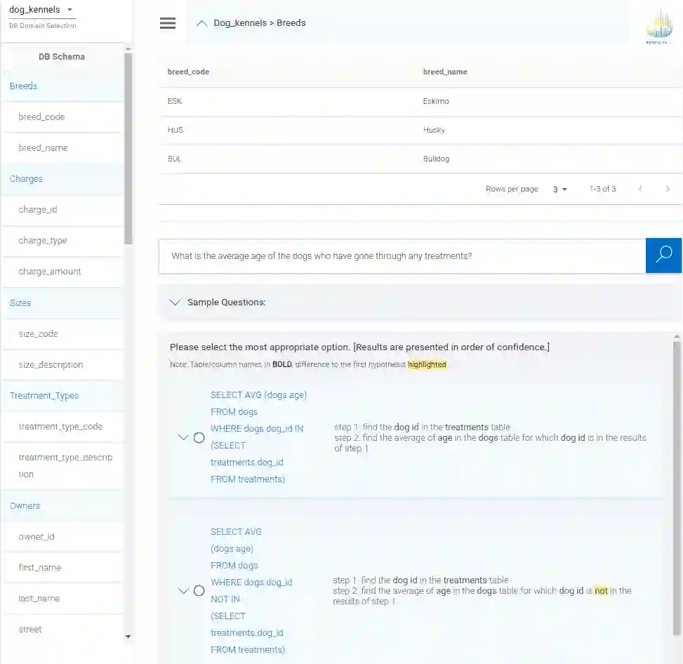 翻译:自然语言数据库界面(NLDB)可以使非技术用户的数据驱动洞察力民主化。 但是,现有的文本到SQL语义分析器无法在交叉数据库设置中达到足够精确的跨数据库设置,从而在实践中能够很好地使用。 这项工作展示了图灵,这是争取弥合这一差距的全民联系统。 图灵的跨界语义分析器与我们的新颖价值预测方法实现了751美元的执行精确度,在蜘蛛验证集中实现了783美元顶部5比亚执行精确度。 为了得益于更高的波束精确度,我们设计了一个互动系统,用自然语言逐步解释SQL假设,并突出其差异。 用户然后可以比较并判断用来选择哪些假说是否反映其意图的假说。 图灵的SQL查询的英语解释是由我们基于同步语法的高精度自然语言生成系统制作的。