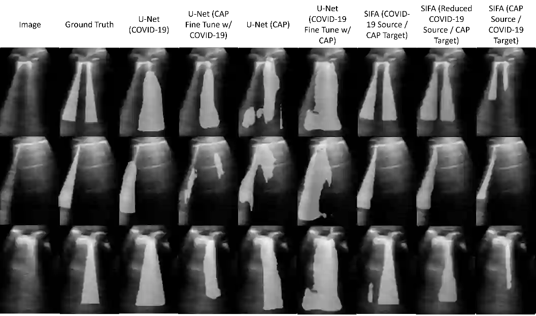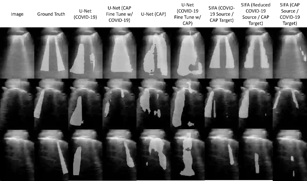 翻译:肺部超声成像显示,在发现肺部间肺炎典型模式方面,作为COVID-19和其他社区肺炎(CAP)患者的护理点工具,肺部超声成像显示非常有效。在这项工作中,我们注重超速B线分解任务。我们利用深神经网络,自动概括显示病理敏感的人工制品及其相关声学模式的区域。在真实世界数据缺损假设中,我们调查了利用COVID-19和CAP肺部超声波数据来培训网络的方法;比较了微调和不受监督的域域适应。将肺部状况分为两种类型,可能支持流行病各阶段的一系列临床应用,但也展示了资源受限制的临床假设情景的价值。将从COVID-19病人获得的实际临床数据调整为CAP病人的病情图。将Dice的得分从0.60至0.87(p <0.001)和0.43至0.71(p < 0.001),独立COVID-19和CAP测试案例的得分数数据均值进行测试;将肺部肺部病况进行精确的改善,从我们进行临床数据调整时,在数据库数据调整时,也显示了标准化数据调整数据的准确度的改进,数据,只是数据调整数据,数据,从数据库数据调整数据,从试测测测测测测测数据数据,从一个数据,从试数据,从试数据,从试度为标准数据,从试数据,从试度数据,从试数据,从试为标准数据,到试度的度数据,从试度数据,从试度数据,从试度数据,从试度为标准,到试度数据,从试度,从试测测测测测测测度数据,从试。