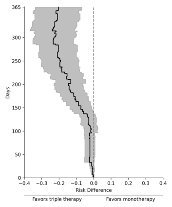 翻译:对治疗或接触的比较是流行病学的中心利益,但由于实际或伦理原因,直接比较并非总有可能实现。这里,我们详细介绍了一种数据混合法,使各研究之间能够进行过渡性治疗比较。激励性实例涉及比较在分配三重治疗和单一抗逆转录病毒疗法时艾滋病毒感染者综合结果的风险,即死亡、艾滋病或超过50%的CD4细胞计数下降50%,使用艾滋病临床试验组175(对双重治疗)和ACTG320(双重治疗和三重治疗)的数据。我们审查一套识别假设并估计风险差异。我们使用一个反概率加权估计器,利用共同试用武器(双重治疗)进行计算。根据对共用武器进行比较后提出的聚合诊断分析可能表明违反识别假设。数据集算和诊断对ACTG试验的应用表明,与个人单项治疗相比,风险减少的三倍结果是50至300个细胞/立方米之间的单项治疗。我们审查一套识别假设比较方法,解决了每个组成数据源都无法单独处理的问题,但需要仔细考虑。