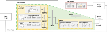 翻译:在本文中,我们提出一个多目标相机 ISP 框架,利用深强化学习(DRL)和相机 ISP 工具箱,由基于网络的和传统的 ISP 工具组成。基于 DRL 的相机 ISP 框架从工具箱中迭接地选择一个适当的工具,并将其应用到图像上,以最大限度地发挥特定愿景任务的具体奖赏功能。为此,我们总共实施了51个 ISP 工具,其中包括暴露校正、彩色和色校正、白平衡、精亮、脱色等。我们还提出了高效的 DRL 网络架构,能够提取图像的各个方面,并在图像和大量行动之间建立僵硬的映射关系。我们基于 DRL 的 ISP 框架根据每个愿景任务,如RAW--RGB 图像恢复、 2D 对象探测和单层深度估计,有效地提高了图像质量。