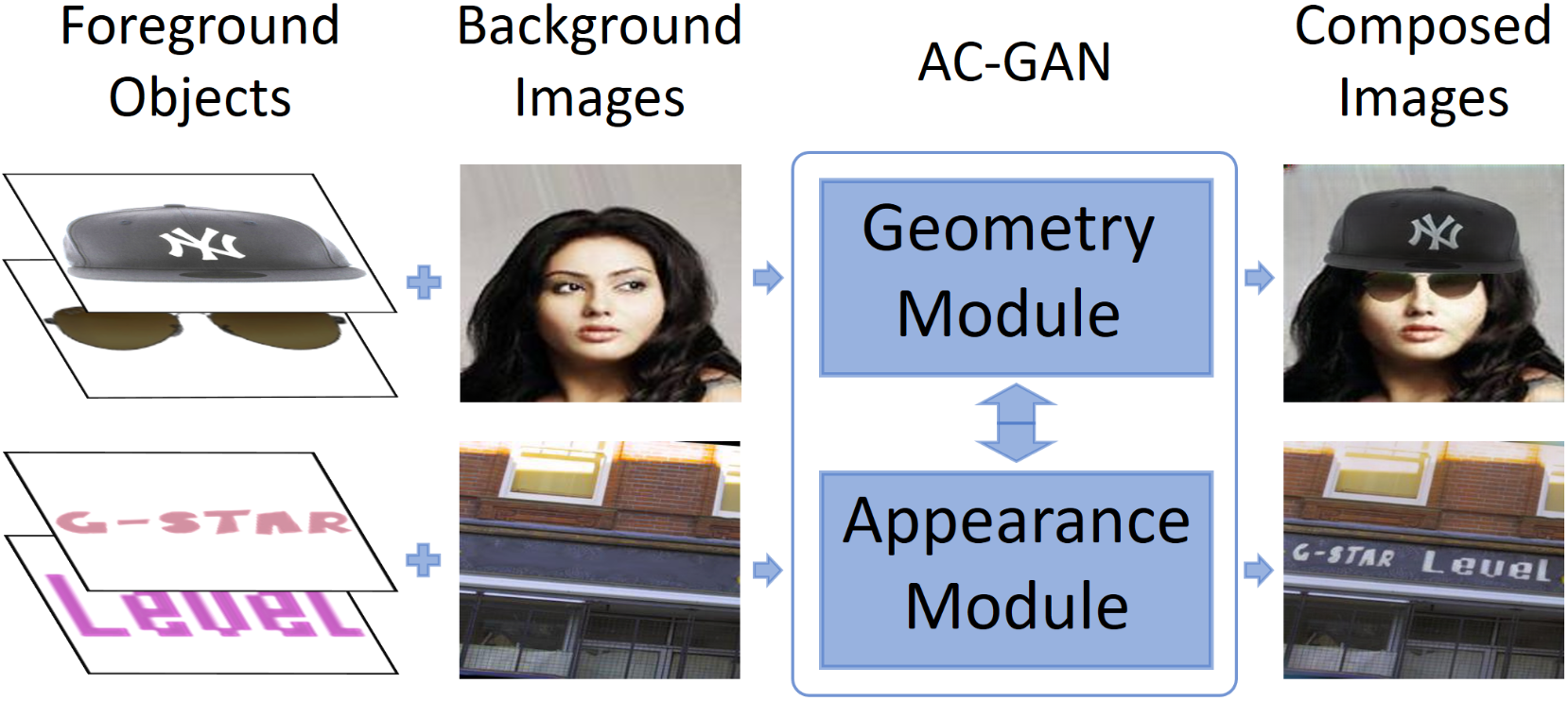 Despite the rapid progress of generative adversarial networks (GANs) in image synthesis in recent years, current approaches work in either geometry domain or appearance domain which tend to introduce various synthesis artifacts. This paper presents an innovative Adaptive Composition GAN (AC-GAN) that incorporates image synthesis in geometry and appearance domains into an end-to-end trainable network and achieves synthesis realism in both domains simultaneously. An innovative hierarchical synthesis mechanism is designed which is capable of generating realistic geometry and composition when multiple foreground objects with or without occlusions are involved in synthesis. In addition, a novel attention mask is introduced to guide the appearance adaptation to the embedded foreground objects which helps preserve image details and resolution and also provide better reference for synthesis in geometry domain. Extensive experiments on scene text image synthesis, automated portrait editing and indoor rendering tasks show that the proposed AC-GAN achieves superior synthesis performance qualitatively and quantitatively.