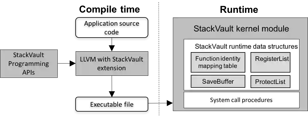 翻译:最近,Equifax攻击影响到147M用户和第三方图书馆 -- -- Apache Struts -- -- 据称应对这一攻击负责。这些攻击经常利用敏感数据在过程记忆中未经加密存储,可由在同一过程中执行的任何功能进入,包括未经信任的第三方图书馆功能。本文展示了StackVault,这是一个以内核为基础的系统,以防止以内部处理功能未经授权的方式获取敏感堆叠数据。基于堆叠的数据包括堆叠数据以及堆叠点变量标出的数据。StackVault由三个组成部分组成:(1)一套编程API系统,使用户能够指定哪些数据需要保护,(2)一个使用不可靠功能身份可靠地执行敏感数据保护的内核模块,(3)一个LLLLVM编集扩展系统,使堆叠保护操作能够透明地进行。StackVault系统通过对敏感堆叠数据进行空间和时间访问监控和对堆叠变量进行数据控制,并不受信任地控制。 StackVaultVault a restal a lax Vlaftal a restime a laftal a restimal a resutal abal abal affotal abal affacts.