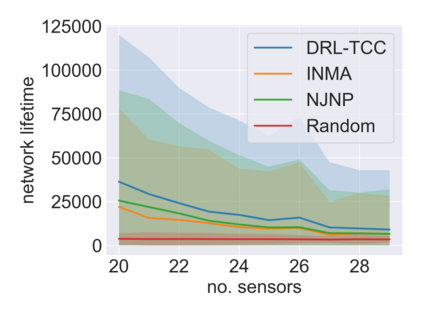 翻译:无线传感器网络由随机分布的传感器节点组成,用于监测目标或感兴趣的领域。维持持续监测网络是一项挑战,因为每个传感器的电池容量有限。无线电能转让技术正在成为通过部署移动充电器(MC)为传感器充电而激活传感器的可靠解决方案。然而,由于网络中产生的不确定性,为传感器设计最佳充电路径具有挑战性。传感器的能量消耗率可能因网络地形变化不可预测而大幅波动,如节点故障。这些变化还导致每个传感器的重要性发生变化,而现有工程中通常假定这些传感器的重要性也随之发生变化。我们在本文中提出一个新的适应性充电计划,采用深度强化学习(DRL)方法来应对这些挑战。具体地说,我们赋予MC一项充电政策,决定下一个传感器在网络当前状态上充电的调。我们随后使用一个深神经网络来调整这种充电政策,通过强化学习技术加以培训。我们的模型可以适应网络顶层学的自发变化。我们在本文中提出这样的挑战,我们采用新的调整性充电,方法是采用一种巨大的变压算法。