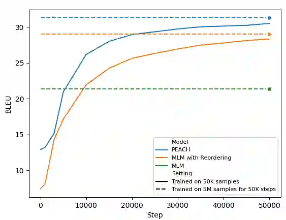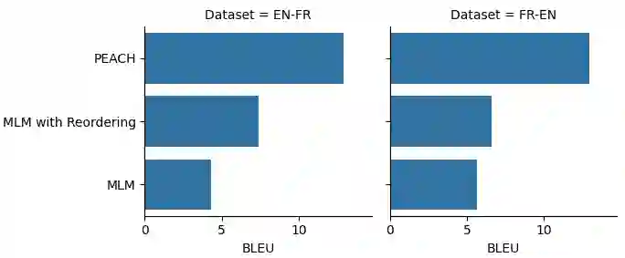 翻译:多语言预训练显著提高了许多多语言NLP任务的表现,包括机器翻译。大多数现有方法基于掩码语言建模和文本去噪函数变体,用于单语数据的多语言预训练。单语预训练忽略了许多语言对中可用的平行数据。另外,一些其他作品将可用的人工生成的平行翻译数据整合到预训练中。这种平行数据无疑是有用的,但即使在高资源语言对中也是有限的。本文介绍了一种新颖的半监督方法,SPDG,用于为多语言预训练生成高质量的伪平行数据。首先,对单语数据进行去噪的模型预训练,重排,添加,删除和替换单词,在增强预训练文档的质量。然后,我们使用字典对每个预训练文档生成不同的伪翻译,并应用预先训练的去噪模型。生成的伪平行数据随后用于预训练我们的多语言序列到序列模型 PEACH。我们的实验表明,PEACH 在各种翻译任务中,包括受监督的、零和少样本情况下,都优于现有方法用于训练mT5和mBART。此外,PEACH 在类似语言之间传递知识的能力使其特别适用于低资源语言。我们的研究结果表明,在具有高质量字典以生成准确的伪平行数据的情况下,PEACH 对于低资源语言非常有价值。