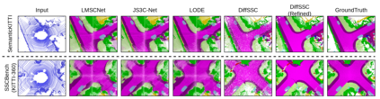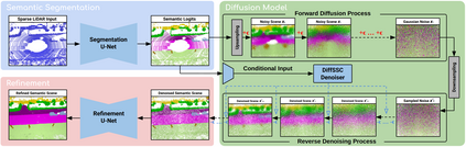 Perception systems play a crucial role in autonomous driving, incorporating multiple sensors and corresponding computer vision algorithms. 3D LiDAR sensors are widely used to capture sparse point clouds of the vehicle's surroundings. However, such systems struggle to perceive occluded areas and gaps in the scene due to the sparsity of these point clouds and their lack of semantics. To address these challenges, Semantic Scene Completion (SSC) jointly predicts unobserved geometry and semantics in the scene given raw LiDAR measurements, aiming for a more complete scene representation. Building on promising results of diffusion models in image generation and super-resolution tasks, we propose their extension to SSC by implementing the noising and denoising diffusion processes in the point and semantic spaces individually. To control the generation, we employ semantic LiDAR point clouds as conditional input and design local and global regularization losses to stabilize the denoising process. We evaluate our approach on autonomous driving datasets and our approach outperforms the state-of-the-art for SSC.