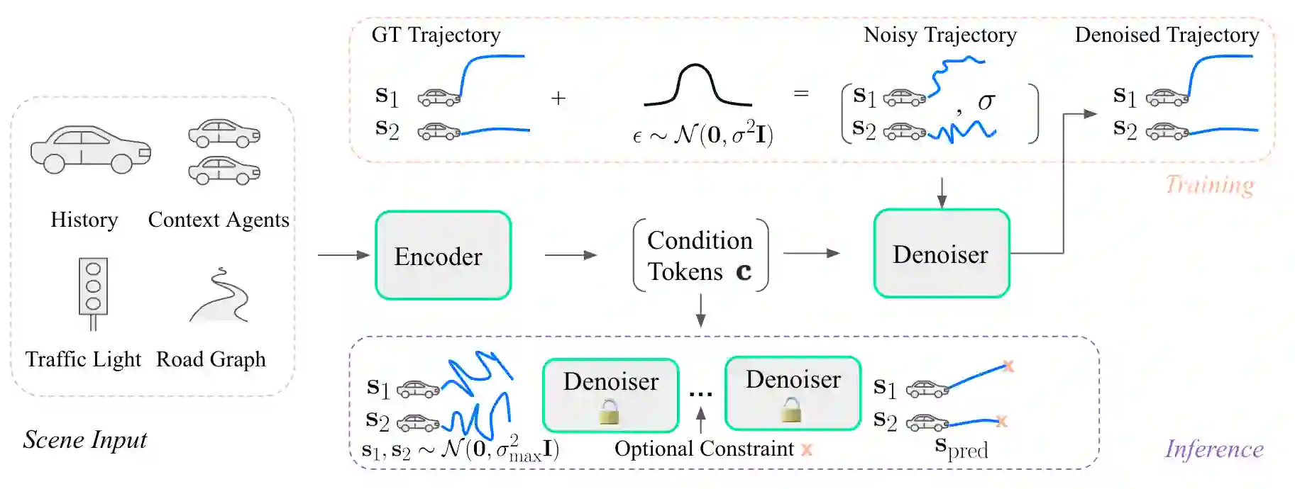 We present MotionDiffuser, a diffusion based representation for the joint distribution of future trajectories over multiple agents. Such representation has several key advantages: first, our model learns a highly multimodal distribution that captures diverse future outcomes. Second, the simple predictor design requires only a single L2 loss training objective, and does not depend on trajectory anchors. Third, our model is capable of learning the joint distribution for the motion of multiple agents in a permutation-invariant manner. Furthermore, we utilize a compressed trajectory representation via PCA, which improves model performance and allows for efficient computation of the exact sample log probability. Subsequently, we propose a general constrained sampling framework that enables controlled trajectory sampling based on differentiable cost functions. This strategy enables a host of applications such as enforcing rules and physical priors, or creating tailored simulation scenarios. MotionDiffuser can be combined with existing backbone architectures to achieve top motion forecasting results. We obtain state-of-the-art results for multi-agent motion prediction on the Waymo Open Motion Dataset.