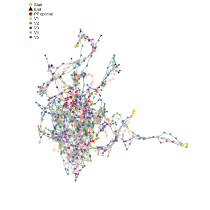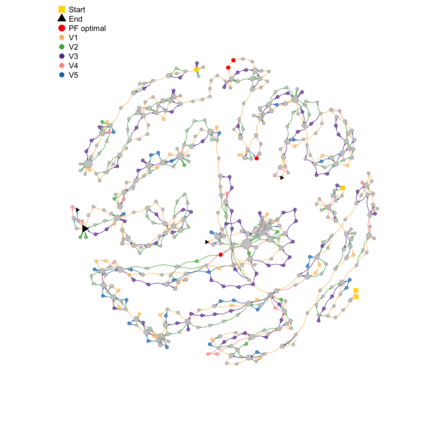 翻译:了解多目标进化算法(MOEAs)的搜索动态仍然是一个尚未解决的问题。 本文扩展了基于网络的最新工具, 搜索轨迹网络( STNs), 以模拟MOEAs的行为。 我们的方法是分解, 将多目标问题转化为几个单一目标问题。 我们显示, STNs可以用来模拟和区分两种流行的多目标算法( MOEA/ D 和 NSGA- II) 的搜索行为, 使用两个和三个目标的10个连续基准问题。 我们的发现表明, 我们可以用 STNs 进行算法分析来改进我们对MOEAs的理解 。