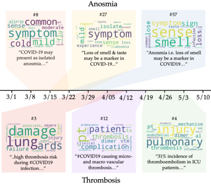 翻译:在公共卫生紧急情况下,COVID-19大流行病的迅速演变凸显了迅速传播最新临床知识的必要性,在公共卫生紧急情况下,保健专业人员分享第一线知识和经验的一个令人惊讶的有效平台是社交媒体(例如推特上的“#medTwitter”社群);然而,在社会媒体中发现临床相关内容而不用人工标签是一种挑战,因为相关数据数量庞大,因此不需要人工标签。我们从社交媒体数据中对与地雷临床相关的信息采用了一种不受监督的迭接方法,从黑过滤HCP所撰写的文本开始,并结合MetaMap进行主题建模和概念提取。这一方法确定了从2020年1月至6月中旬的一组约5 200万个COVID-19相关推特中具有高度临床相关性的颗粒议题和推特。我们还表明,由于技术不需要人工标签,因此可以使用周至周内新出现的主题。我们的方法可以帮助未来的公共卫生紧急情况,方法是在快速变化的信息环境中促进保健工作者之间的知识转让,并为临床研究领域提供高效和未经监督的潜在领域。