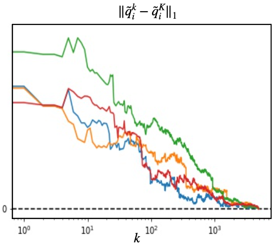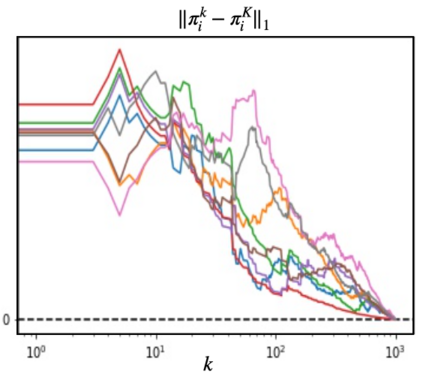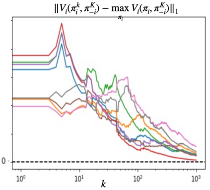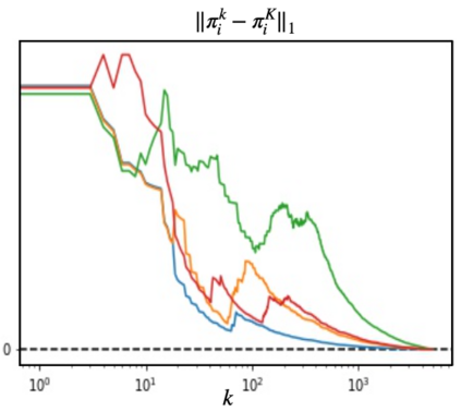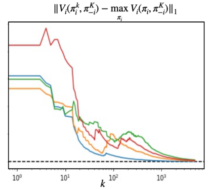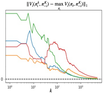 翻译:我们建议多试剂强化学习动态, 并分析其在无限象素折扣的Markov潜在游戏中的趋同特性。 我们关注独立和分散的场景, 玩家只能在每个阶段观察已经实现的状态和他们自己的奖赏。 玩家对游戏模式并不了解, 并且无法相互协调。 在学习动态的每个阶段, 玩家更新了他们对于受干扰的Q- 功能的估计, 根据已经实现的一阶段奖赏, 以不同步的方式评估他们的总或有报酬。 然后, 玩家独立更新他们的政策, 根据估计的Q- 功能, 引入一个平稳的最佳一阶段偏差战略 。 学习动态的一个关键特征是, Q- 功能估计的更新速度比政策要快。 我们证明, 我们学习动态所引发的政策与马尔科夫 潜在游戏的定点纳什平衡相交汇合, 概率 1. 我们的结果建立在两个时间尺度的不同步的随机近近理论基础上, 并且根据Markov 潜在游戏中政策更新的轨迹对潜在功能的单一性进行新的分析 。