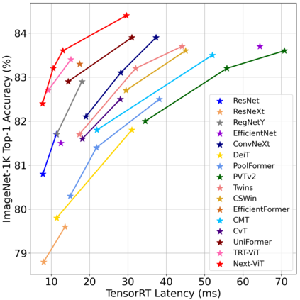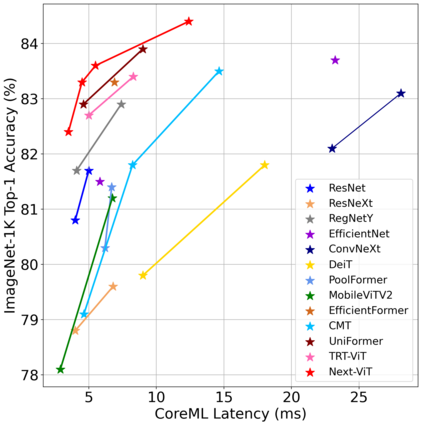 翻译:47. 由于关注机制和模型设计的复杂性,大多数现有视觉变异器(ViTs)无法在现实的工业部署情景(如TensorRT和CoreML)中像革命性神经网络(CNNNNNNNNNNNN)那样高效地运行。这提出了截然不同的挑战:视觉神经网络能否像CNNNNNNNNNNB(NCB)和ViTS的功能一样快速运行?最近的一些工程试图设计CNN-Transent混合结构来解决这一问题,然而这些工程的总体绩效远远远不能令人满意。为了结束这些工程,我们提议下一代的视觉变异器变异器(NCNNNNNNNNNNNN) 以现实性工业情景(即NFT) 高效的配置方式部署有效,即NFNFT(NVOO) 和NVADO(NVADRML) 的变异性功能将显著地显示NVADRADRM(NVADR) 和(NVOILADRIL) IMDADADRDRDRDRD(NVI) IMDRD)