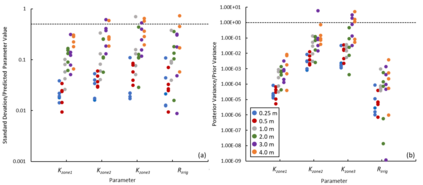 翻译:地下水流模型通常用于计算地下水头、估计地下水流路径和旅行时间,并对含水层内的溶液运输过程提供洞察力。然而,驱动地下水流模型的输入参数值往往由于地表下层异质和地质复杂性,加上缺乏测量/不可靠的测量结果,因此,不确定性影响模型产出的准确性和可靠性。因此,参数的不确定性必须量化,然后才采用模型作为工程工具。在本研究中,我们将不确定参数作为随机变量进行模型模型模型模型模型的模型,并使用巴耶斯反向法方法,为这些参数获得一个后表层、数据知情、概率密度功能(pdf),特别是,我们所考虑的参数的概率功能往往非常不确定,因为地下水泉的测量和“专家知识”范围不强。为了控制模型产出的精确性和可靠性,我们假定参数的后部的参数具有可计量性。为了证实这一假设,我们用Bayesian的参数分析:我们用回移程序对数组合成数据进行污染,开始测测测测测测,我们用河底的噪音值,然后从Rivo 开始,我们用一个水平,我们从Ribilal 恢复一个数据,然后在意大利恢复一个水平,我们从Ribal Ribal 进行一个水平,我们可以确定一个水平,然后恢复一个水平。