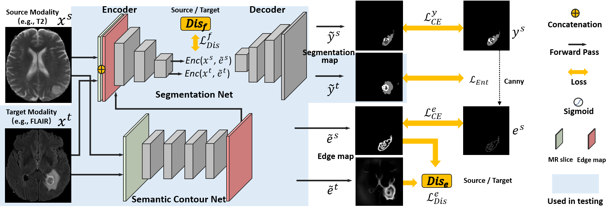 翻译:~ 为此,在这项工作中,我们提议利用低层边缘信息促进适应,将其作为一项先质任务,与语义分离相比,该先导任务具有小的跨域差距。 ~ 精确的轮廓随后提供了空间信息,以指导语义适应。更具体地说,我们提议了一个多任务框架,以学习与语义分离适应网络的连接适应网络,同时学习语义分离适应网络,这一网络既采用磁共振成像(MRI)切片,又使用最初的边缘地图作为投入。~ 这两个网络与源域标签共同培训,为跨域校正对进行特征和边缘地图水平对抗性学习。此外,将自体机能最小化纳入进来,以进一步加强语义分离性能。我们评估了我们在BRATS2018数据库中用于脑肿瘤跨模式分离的框架,与相互竞争的方法相比,显示了我们的方法的有效性和优越性。
