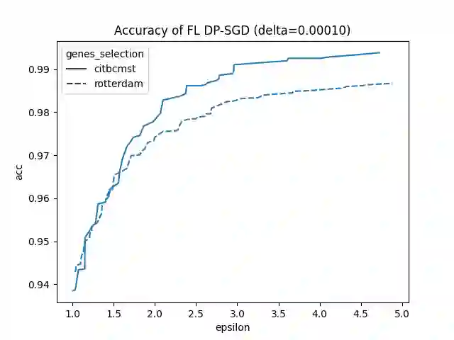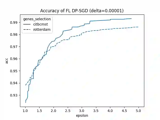 翻译:自2014年以来,NIH资助了国家生物医学计算中心(IDASH) iDASH(综合分析、匿名、SHaring数据综合数据),每年举办关于基因组数据私人计算主题的年度竞赛,对于2020年这一竞争迭代的一个方面,参与者受到挑战,要制定一种方法,利用不同的隐私(DP)对基因组癌预测模型进行联合学习(FL)培训,提交材料按特定一组DP预算的稳妥测试准确性排列。更确切地说,在这一方面,我们的任务是培训一个监督模型,用于预测两个虚拟中心通过基因组数据分割的乳腺癌发生率,同时确保通过DP进行模型转移时的数据隐私。在本条中,我们介绍了我们向这一竞争提交的第3位材料。在竞争期间,我们遇到了该条讨论的两个主要挑战:一) 确保隐私预算评估的正确性,二) 在预测性业绩和隐私预算之间实现可接受的权衡。