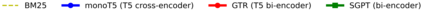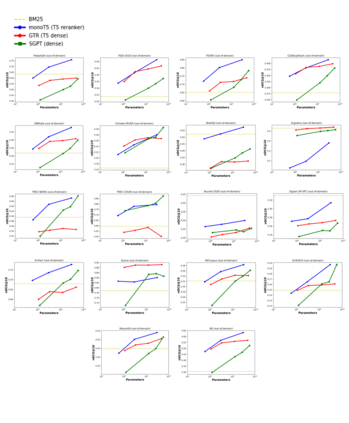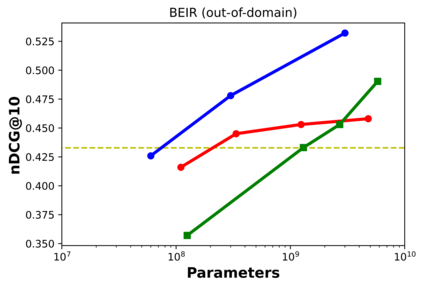 翻译:在这项工作中,我们研究了这两类建筑在一系列参数上的普及能力,这两类建筑的普及能力,这些参数既取决于内部和外部的假设情况。我们发现,跨编码者的参数和早期查询文档互动数量在检索模型的普及能力中起着重要作用。我们的实验表明,日益扩大的模型规模导致在现场测试组中取得边际收益,但在微调期间从未看到过的新领域获得的更大收益。此外,我们还表明,跨编码器在多项任务中基本上优于类似规模的双编码器。在BEIR基准中,我们最大的交叉编码超过一个最先进的双编码器,平均超过4个点。最后,我们表明,使用双编码器作为第一阶段检索器,与像BM25这样的较简单的检索器相比,在外部任务上没有取得任何收益。该代码可在 https://githrub.comm/guilling https://gistrireireub.