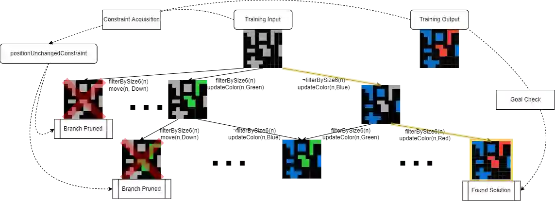翻译:《抽象与理性公司(ARC)》旨在为一般人工智能算法的性能设定基准。 ARC的焦点是广义的概括和微小的学习,这使得无法使用纯机学习来解决问题。更有希望的做法是在适当设计的域特定语言(DSL)中进行程序合成。然而,这些也取得了有限的成功。我们建议采用图表抽象抽象抽象(ARGA),这是一个以物体为中心的新框架,首先用图表代表图像,然后在基于抽象图形空间的DSL中进行正确程序搜索。这种组合式搜索的复杂性通过使用约束性获取、州仓储和Tabau搜索来调节。一系列广泛的实验表明ARGA在高效地处理ARC的一些复杂任务方面有希望,产生正确和易于理解的程序。