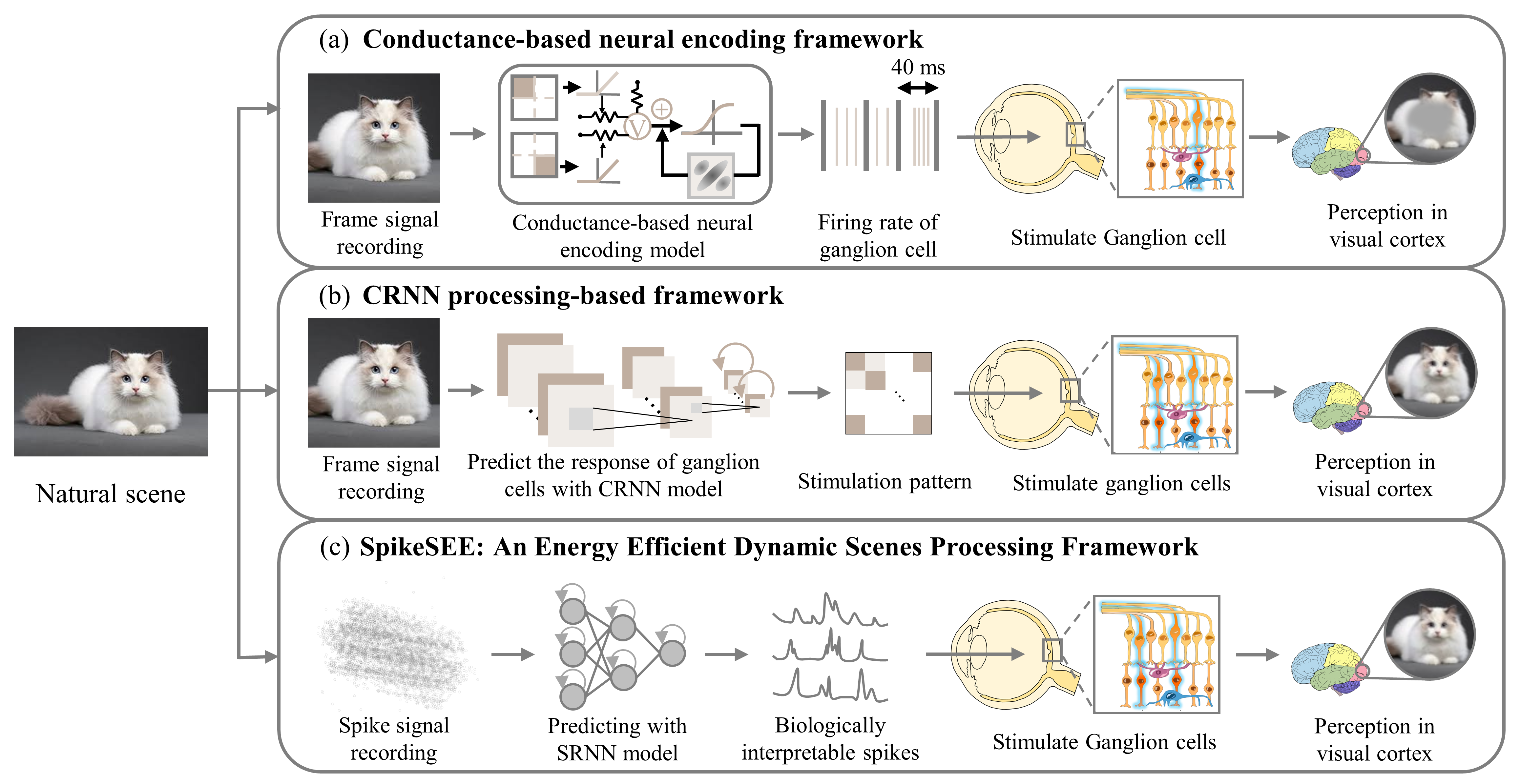 翻译:智能和低功率的视网膜假肢在这个时代需要非常高的智能和低功率的视网膜假肢,在这个时代,许多保健应用都使用可磨损和可植入的装置。在本文中,我们提议一个节能的动态场景处理框架(SpikeeSeeE),将高压代表代号编码技术与生物启发的反复神经网络模型(SRNN)模型结合起来,以实现智能处理和对视像的极低功率计算,为视网膜假肢进行极低的测试。在人类视网特殊结构和加压处理方法的启发下,SSRNNN模型被采用,以预测交织细胞对动态场景的反应。实验结果表明,拟议的SRNN模型的皮尔森相关系数达到了0.93,这超出了对视网的状态处理框架。由于峰值代表和SRNNN的处理,该模型可以以不重复的方式提取视觉特征。这个框架建议与同级的恒定式神经网络(CRNPN)相比,能够更准确地预测我们的恒定的节能反应。