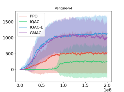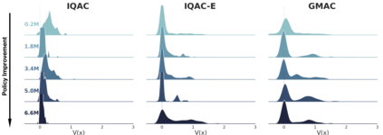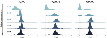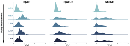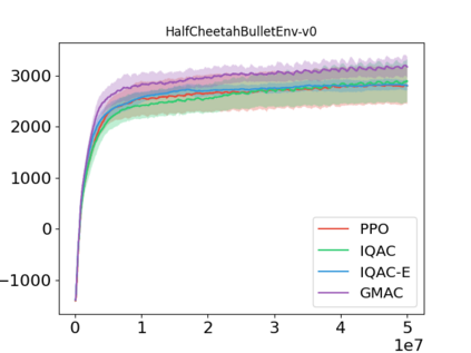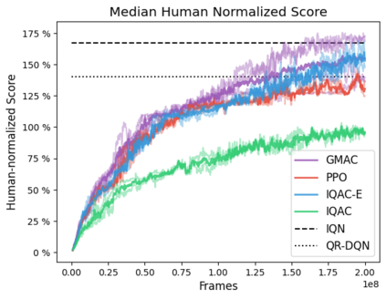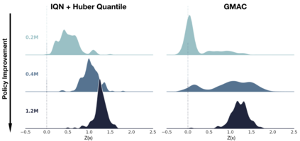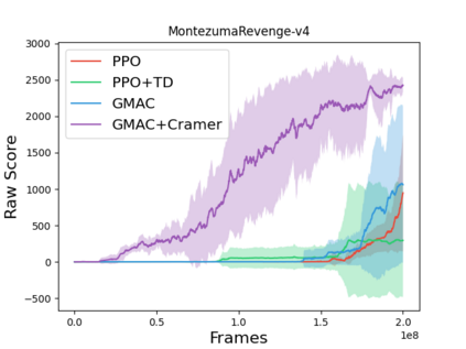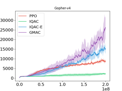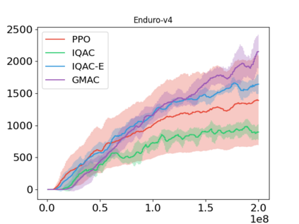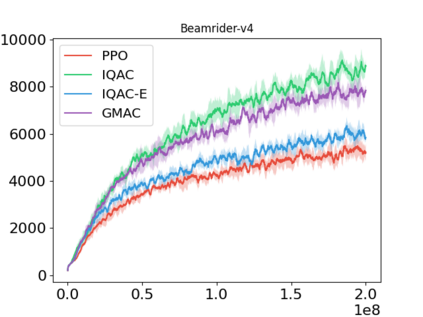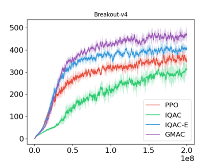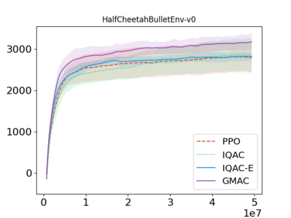 翻译:在本文中,我们设计了一个关于行为者-批评的分布框架,作为分配不稳定、行动类型限制以及将样本和统计数据混为一谈的一种解决办法。我们提出了一种新的方法,以最大限度地减少从一种新型的样样替换算法中生成的多步Bellman目标分布的Cram\'er距离,代之以SR($\lambda$),该算法在多个Bellman操作中学习正确的价值分布。与Gausian Mixture模型的值分配参数进一步提高了该方法(我们称之为GMAC)的效率和性能。我们从经验上表明,GMAC在使用Arcade学习环境(ALE)和PyBullet环境的离散和连续行动空间中,都掌握了价值分配的正确代表性,并改进了低计算成本的常规行为者-批评方法的性能。