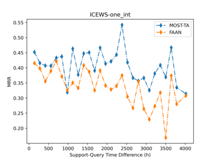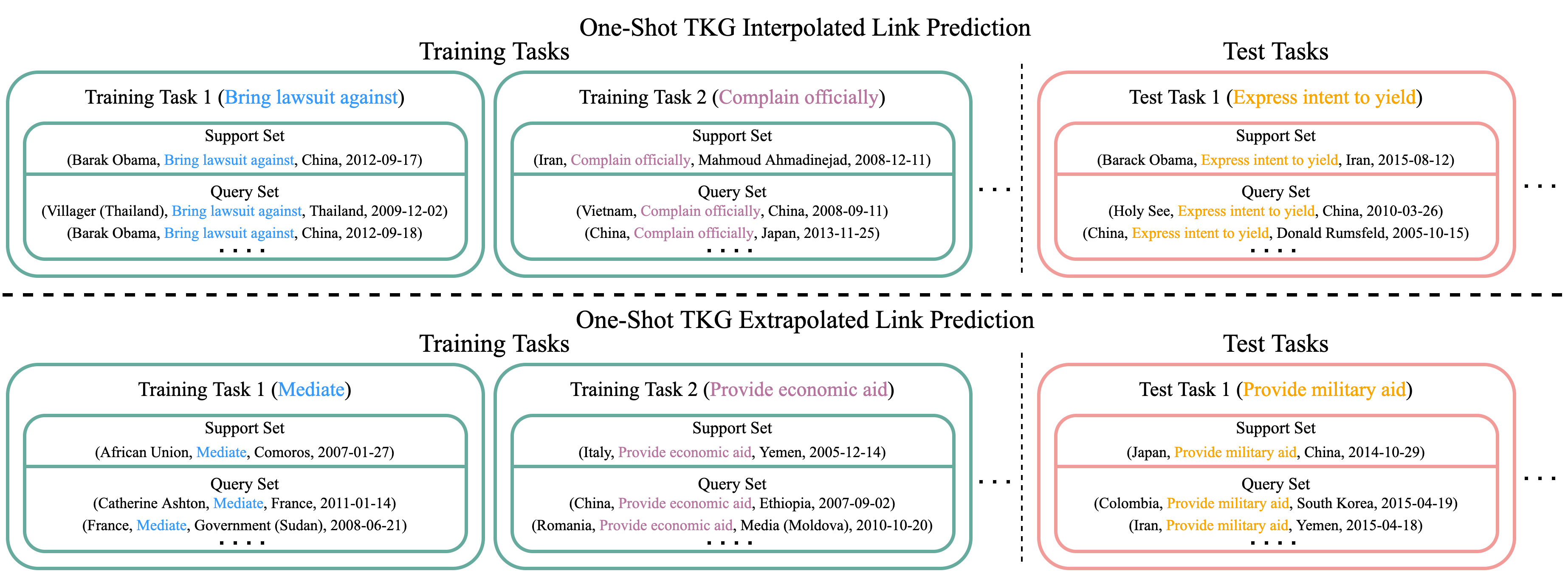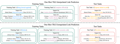 Few-shot relational learning for static knowledge graphs (KGs) has drawn greater interest in recent years, while few-shot learning for temporal knowledge graphs (TKGs) has hardly been studied. Compared to KGs, TKGs contain rich temporal information, thus requiring temporal reasoning techniques for modeling. This poses a greater challenge in learning few-shot relations in the temporal context. In this paper, we follow the previous work that focuses on few-shot relational learning on static KGs and extend two fundamental TKG reasoning tasks, i.e., interpolated and extrapolated link prediction, to the one-shot setting. We propose four new large-scale benchmark datasets and develop a TKG reasoning model for learning one-shot relations in TKGs. Experimental results show that our model can achieve superior performance on all datasets in both TKG link prediction tasks.