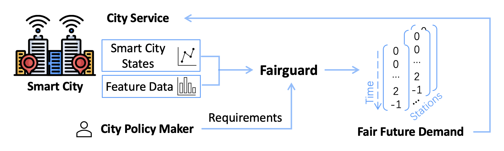 Smart cities operate on computational predictive frameworks that collect, aggregate, and utilize data from large-scale sensor networks. However, these frameworks are prone to multiple sources of data and algorithmic bias, which often lead to unfair prediction results. In this work, we first demonstrate that bias persists at a micro-level both temporally and spatially by studying real city data from Chattanooga, TN. To alleviate the issue of such bias, we introduce Fairguard, a micro-level temporal logic-based approach for fair smart city policy adjustment and generation in complex temporal-spatial domains. The Fairguard framework consists of two phases: first, we develop a static generator that is able to reduce data bias based on temporal logic conditions by minimizing correlations between selected attributes. Then, to ensure fairness in predictive algorithms, we design a dynamic component to regulate prediction results and generate future fair predictions by harnessing logic rules. Evaluations show that logic-enabled static Fairguard can effectively reduce the biased correlations while dynamic Fairguard can guarantee fairness on protected groups at run-time with minimal impact on overall performance.