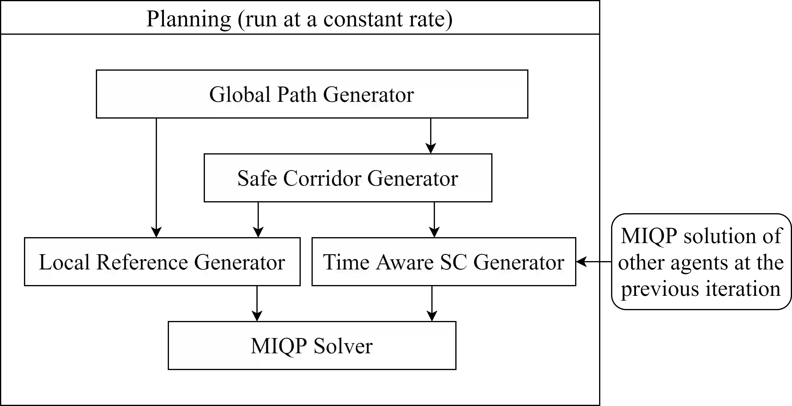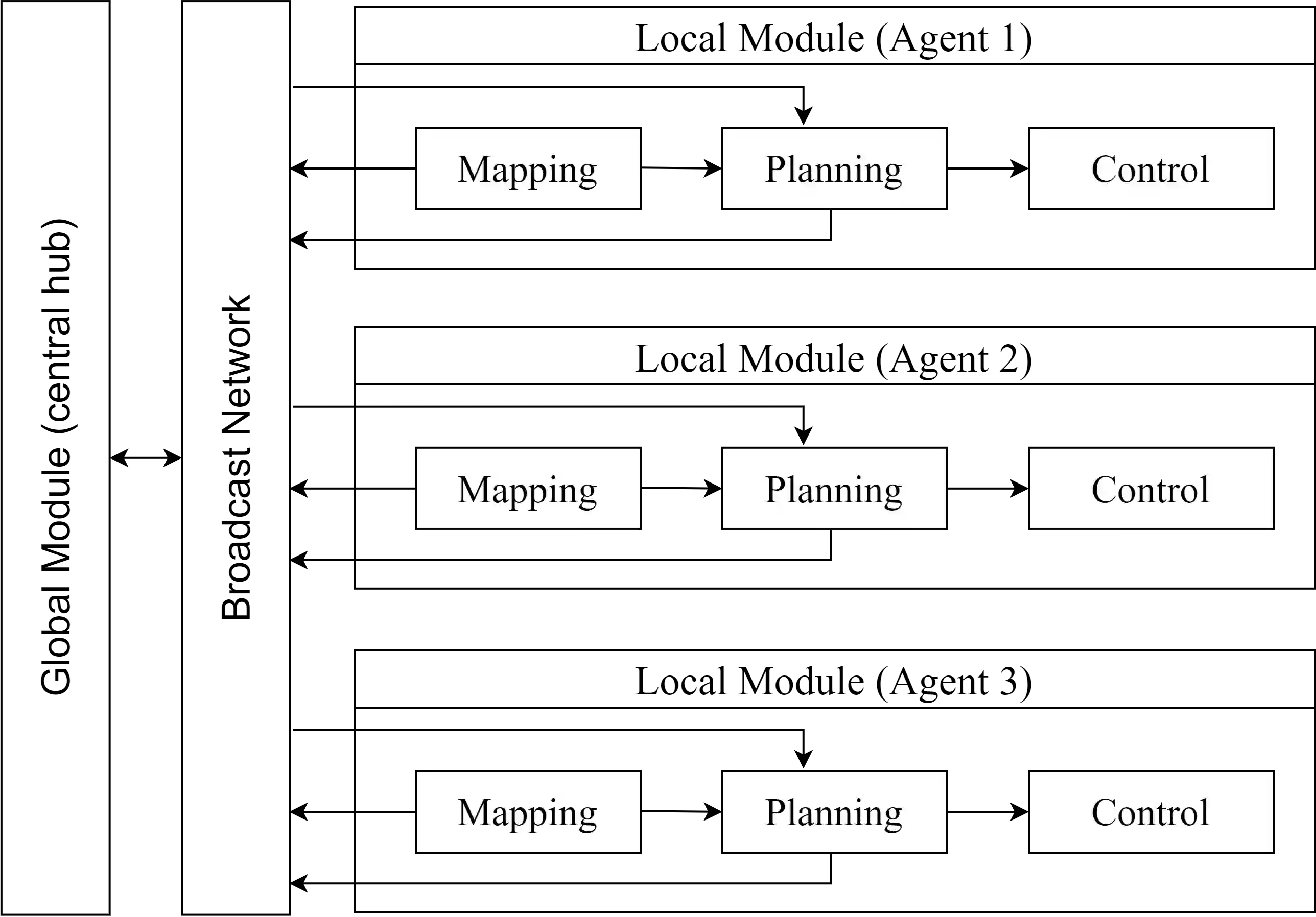 翻译:在本文中,我们提出了对未知环境进行多试剂合作探索的新框架。 拟议的方法结合了绘图、 安全走廊生成和多剂规划方面的最新算法。 首先需要我们想要探索的量子, 然后给多个物剂不同的目标, 以便探索该物量的氧化物网格。 当所有氧化物以自由或占有的方式被发现, 或者没有找到其余未发现的氧化物的路径时, 勘探就结束了 。 最先进的规划法使用有时间觉悟的安全走廊来保证内物剂碰撞的安全以及不受静态障碍的危害。 所提出的方法在艺术模拟器的状态中测试, 最多四个物剂 。