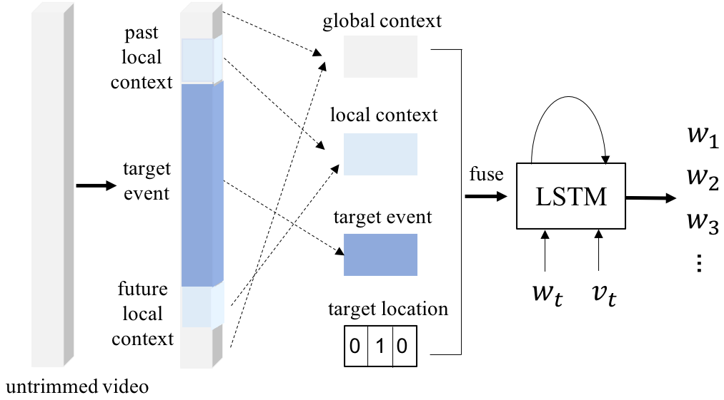 翻译:在这项工作中,我们系统地探索各种字幕模型,其中涉及视频任务中密集字幕活动的各种背景,目的是在未剪辑的视频中为不同事件制作字幕。我们提出了五类背景以及两类事件字幕模型,并评价其对从准确性和多样性两个方面说明事件的贡献。拟议字幕模型被插入我们的管道系统,以应对密集视频字幕挑战。整个系统在视频任务中实现了密集字幕活动的最新性能,在挑战测试组中获得了9.91 METEOR分数。
