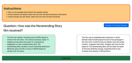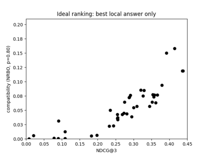 翻译:评估人比分级判决更快、更一致地作出优惠判决。 优惠判决还可以区分等级判决中看起来等同的项目。 不幸的是,优惠判决要求的不仅仅是线性努力来充分订购一批项目,而优惠判决的评价措施没有像NDCG这样的分级判决那样完全确定。 在本文中,我们探讨了部分优惠判决的评估程序,目的是确定和订购池内最顶级的项目,而不是完全订购整个集合。为了衡量一个排级者的绩效,我们通过适用一个类比措施,将其产出与首选的排序进行比较。 我们通过为TREC 2019年交替援助轨道提供部分优惠,以名为“兼容性”的新措施取代NDCG,从而证明这一办法的实际可行性。 在比较现代神经排级时,这一新措施具有最显著的影响,因为它能够确认质量方面的重大改进,否则NDCG会错过。