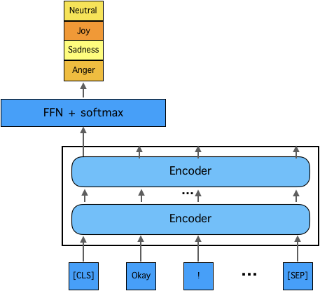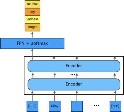 This paper describes our approach to the EmotionX-2019, the shared task of SocialNLP 2019. To detect emotion for each utterance of two datasets from the TV show Friends and Facebook chat log EmotionPush, we propose two-step deep learning based methodology: (i) encode each of the utterance into a sequence of vectors that represent its meaning; and (ii) use a simply softmax classifier to predict one of the emotions amongst four candidates that an utterance may carry. Notice that the source of labeled utterances is not rich, we utilise a well-trained model, known as BERT, to transfer part of the knowledge learned from a large amount of corpus to our model. We then focus on fine-tuning our model until it well fits to the in-domain data. The performance of the proposed model is evaluated by micro-F1 scores, i.e., 79.1% and 86.2% for the testsets of Friends and EmotionPush, respectively. Our model ranks 3rd among 11 submissions.
