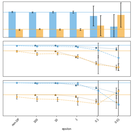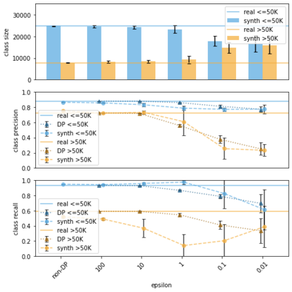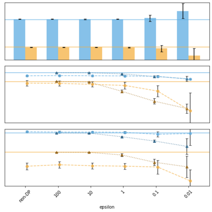 翻译:使用不同隐私(DP)培训的生成模型越来越多地用于以方便隐私的方式制作和分享合成数据。在本文中,我们准备分析DP对这些模型相对于代表性不足的数据类别和分组的影响。我们从两个角度分析DP对这些模型的影响:1) 合成数据中的类别和分组规模,2) 分类准确性。我们还评估了不同程度的不平衡和隐私预算的影响。我们使用三种最先进的DP模型(PrivBayes、DP-WGAN和PATE-GAN)进行的实验表明,DP的结果在生成的合成数据中出现不同大小的分布。更准确地说,它影响到多数类和少数类和分组之间的差距,要么缩小(Robin Hood效应),要么增加(“Mathew”效应)。然而,这两种规模的变化都会导致对分类者准确性产生类似的不同影响,对数据代表性过大的子部分影响。结果,我们呼吁在分析或培训合成数据模型时谨慎对待不同次层的风险,因为后者可能会导致不可靠的。